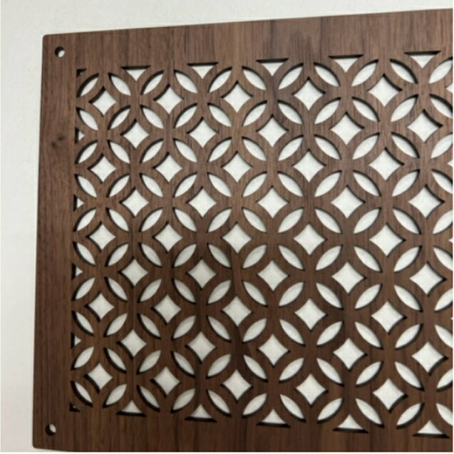 商品情報インテリアサイズ 幅555mmx高さ190mmx厚み3.0mm素材ウォールナット両面突板貼りレーザーで加工致しますので、切断面は、黒く焦げます。