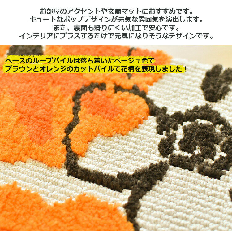 玄関マット 花柄 北欧 室内 風水 おしゃれ 色 北 かわいい 花 エントランスマット デザイン 人気 カジュアル フラワー 滑り止め オレンジソラシエル mat soraciel 緑 グリーン 花 新築祝い 引っ越し祝 内祝い 母の日 敬老の日 おじいちゃん おばあちゃん プレゼント 誕生日ひときわ目立つオレンジの花を咲かせました。