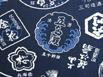 素材コットン 綿 100%柄和柄 SAKE 酒 ネイビーベース生地感日本手拭位の素材サラリとした素材感で爽快!縫製日本縫製 こだわり工房オリジナルご注意※大柄ですので、1点づつ柄の出方が変わります。