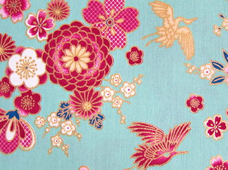 素材コットン 綿 100%柄和柄 幻想鶴桜 薄グリーン ベース生地感日本手拭位の素材サラリとした素材感で爽快!縫製日本縫製 こだわり工房オリジナルご注意※大柄ですので、1点づつ柄の出方が変わります。