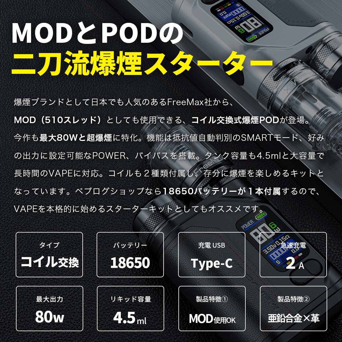 MODとPODの二刀流爆煙スターター ●爆煙ブランドFreeMax社製のPOD。