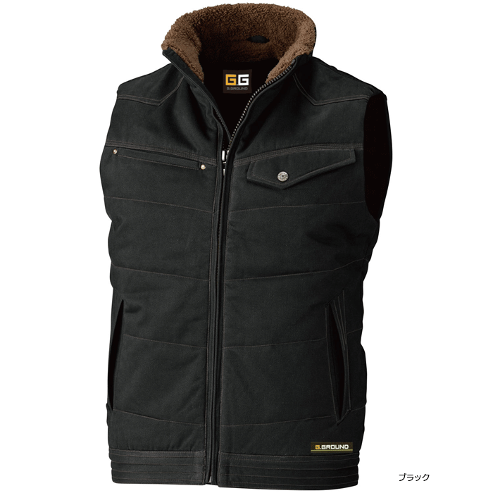 ハードな現場でこそ本領を発揮! 火・熱に強い綿100%防寒ベスト 起毛素材で手触りバツグン! 衿ボアで首回りが暖かい!