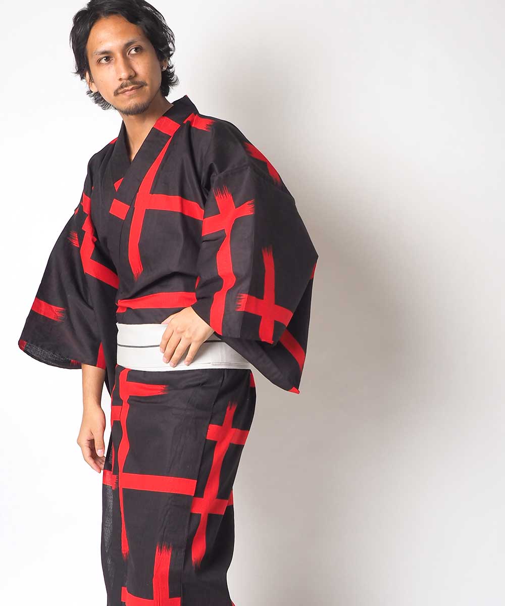 品質 【浴衣】綿90% 麻10% 【帯】綿100% 【下駄】桐 (サイズ) 品名 Ummm. 大格子 カラーイメージ 黒 / 赤 サイズ 浴衣 【 M 】 身丈:約142cm 袖丈:約49cm 裄丈:約72cm 適応身長=160cm〜172cm 【 L 】 身丈:約146cm 袖丈:約49cm 裄丈:約72cm 適応身長=170cm〜180cm 【 LL 】 身丈:約150cm 袖丈:約50cm 裄丈:約74cm 適応身長=175cm〜185cm 【セット帯】 長さ:約395cm 巾:約9cm 【セット下駄】 フリーサイズ(約26.0cm) 商品説明 すぐにお出かけできるシンプルなメンズお仕立て上がり浴衣と 角帯・焼桐下駄・腰紐の4点セットです。